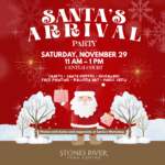 Kick off a joyous holiday season full of family fun at Stones River Town Centre as we celebrate Santa’s arrival, on Saturday, November 29, from 11am to 1pm!